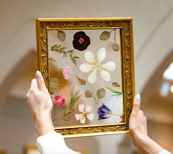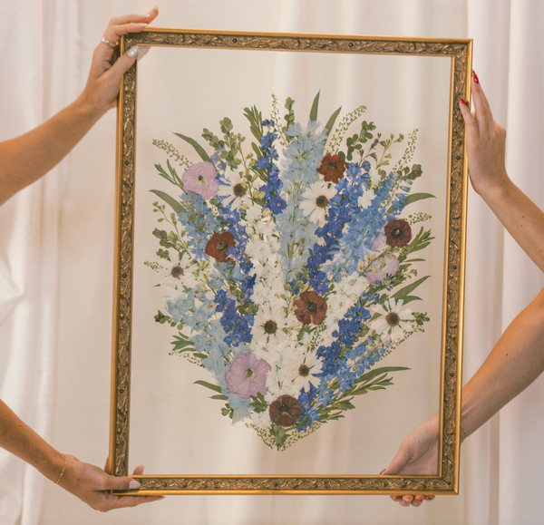At Pressed Floral, we offer four beautiful backing options — linen, paper on linen, paper on glass, and glass on glass — so you can design your piece with the perfect balance of texture, depth, and contrast.