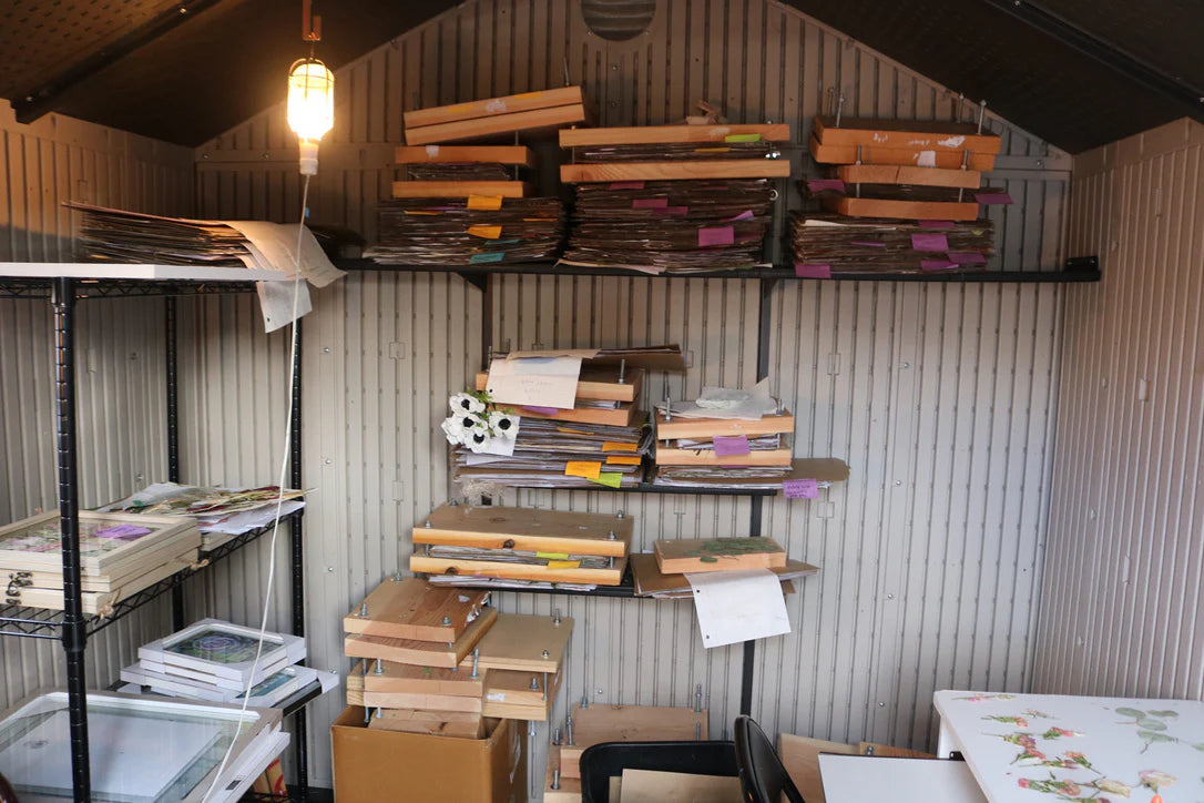 “I loved my shed. I strung lights back there, I put little pictures on the front, and it was perfect for me! There was a seat in the corner for my friends and people who visited so they could come sit with me. I just have so many memories of pressing flowers and designing frames while friends of mine joined me in conversation”