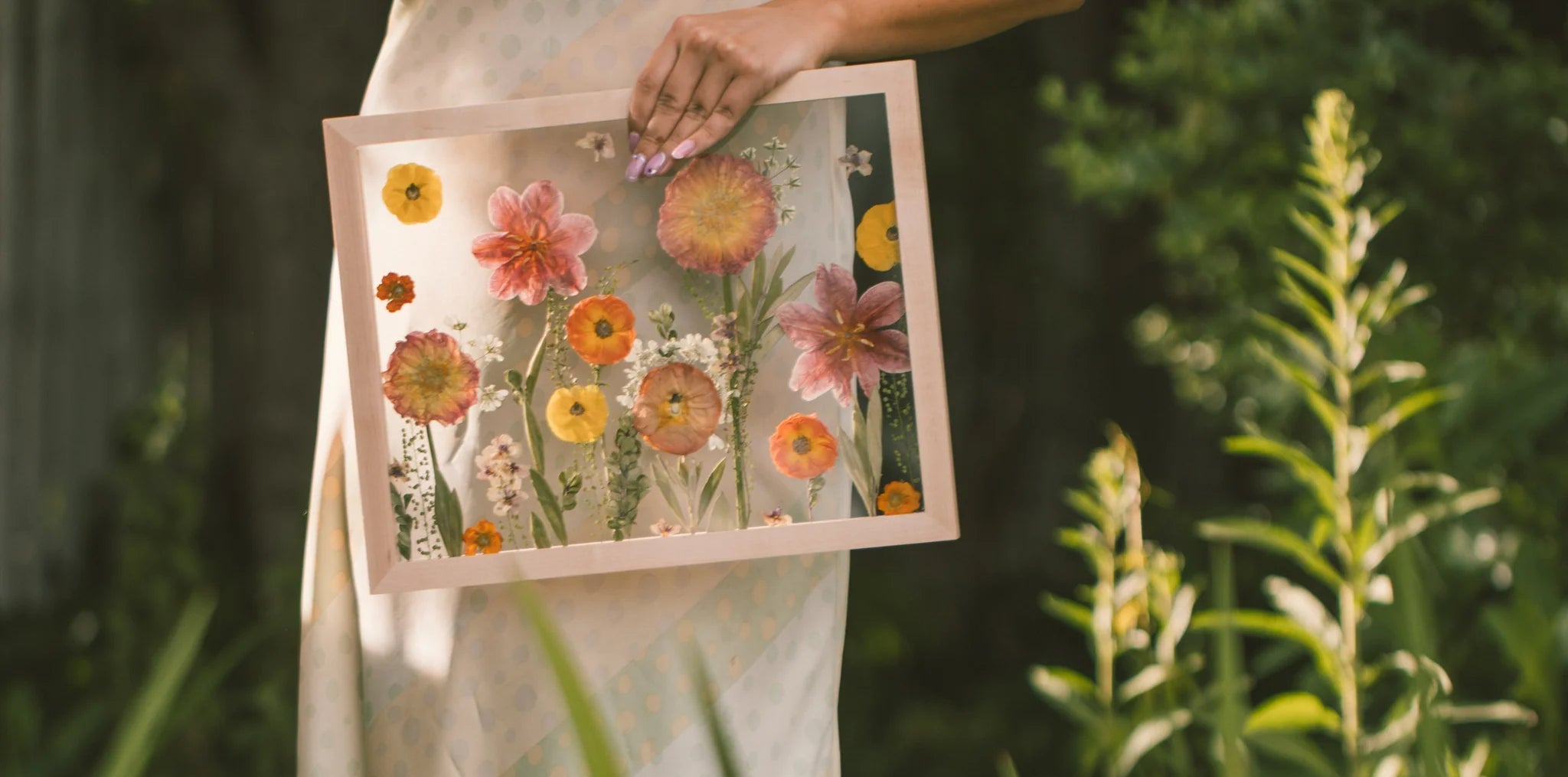 Although the art of floral and botanical preservation has been around for centuries, Sarah finally mastered her own art of natural preservation–trailblazing the Pressed Floral Frame