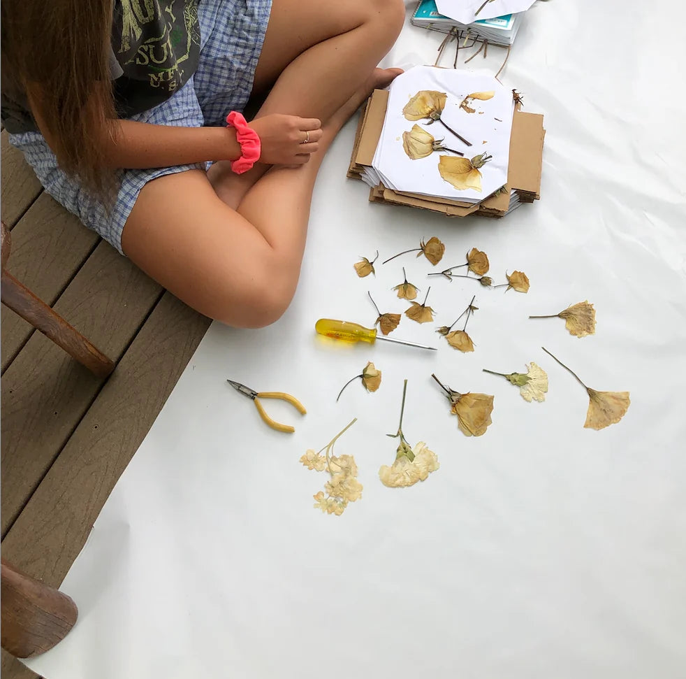 “I would put flowers between paper towels and iron them. I remember getting all of my mom's weights, sandwiching the flowers, and then putting the massive weights on top in a corner of my basement. I also remember trying to press things in the microwave. But everything molded, everything looked so bad.”