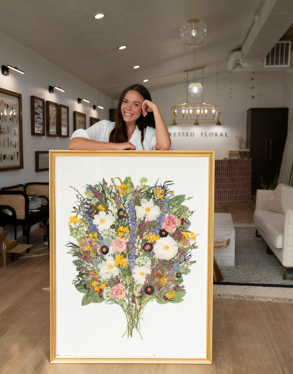 Pressed Floral is a woman-owned and operated business specializing in bespoke pressed flower preservation. We preserve life's special moments through fine art. No frame or flower is alike, just as your stories and memories are significant and personal to you. We receive thousands of shipments of meaningful flowers from across the world to our two locations in Utah and Georgia to be pressed and preserved into bespoke, personalized art pieces.