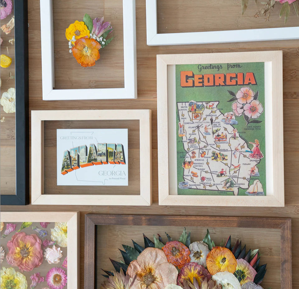 Almost 4.5 years since the first frame was made, Pressed Floral is now expanding and opening a second shop in Georgia. The Georgia expansion became of significant importance as clientele grew in the east and flowers were being shipped from across the country. The Georgia location is closer to our East Coast and SouthEast clients, so their flowers can travel less of a distance, and our clients can save money on shipping in the end.