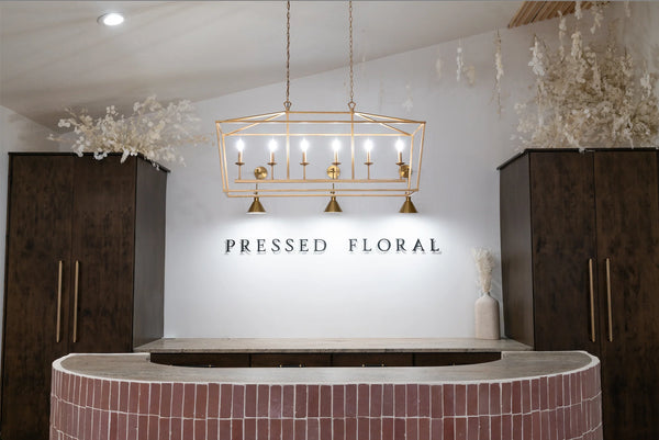 Our current Pressed Floral location in Orem, Utah, was renovated and opened in September of 2022. Our space has an art gallery-style interior displaying our pieces so our clients can best feel out the sizes, designs, and frames they can choose from in their final art piece. Not only is our gallery space intentionally and beautifully designed, our work spaces reflect our value to stay organized and intentional when creating our clients' frames.