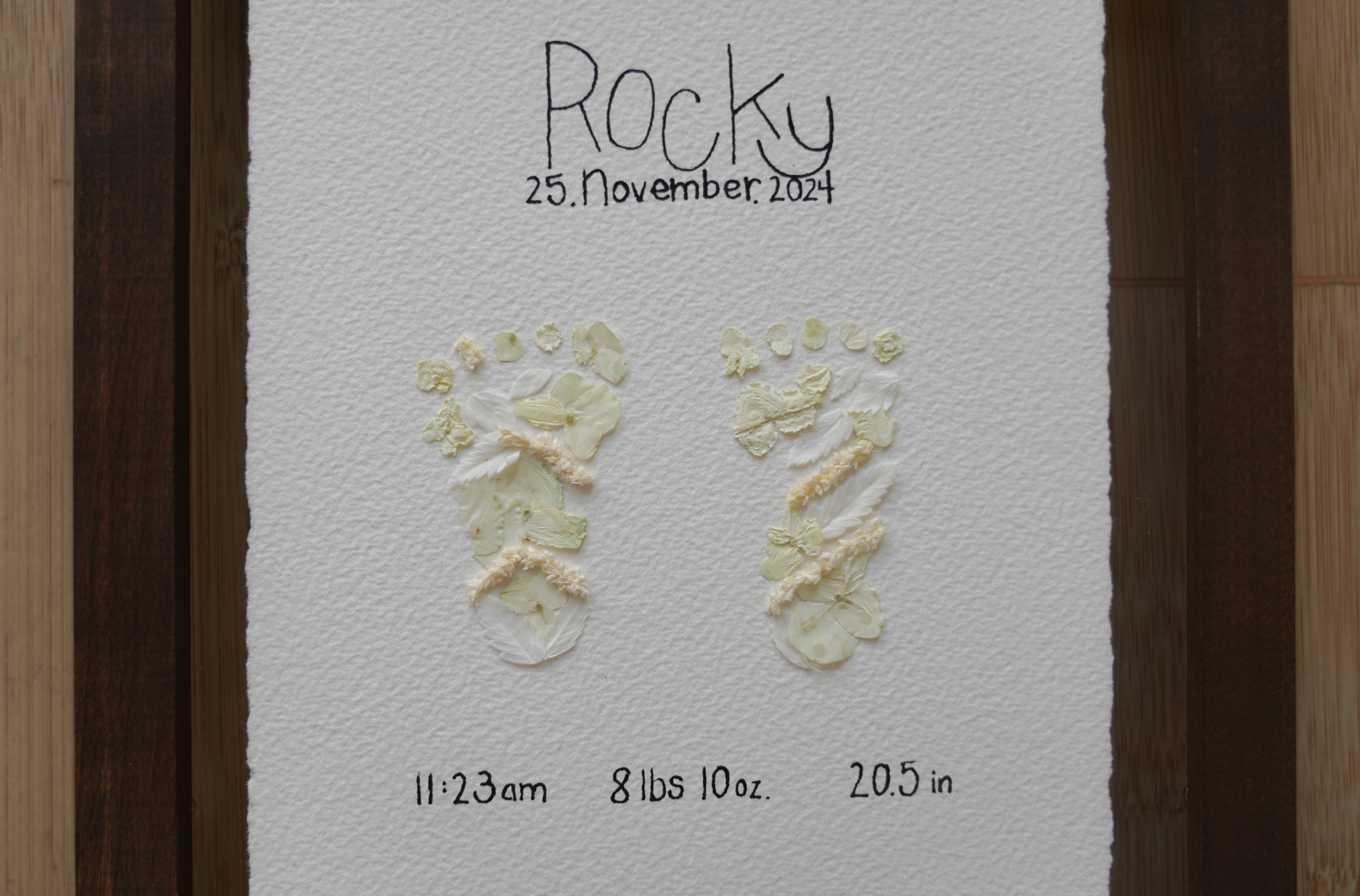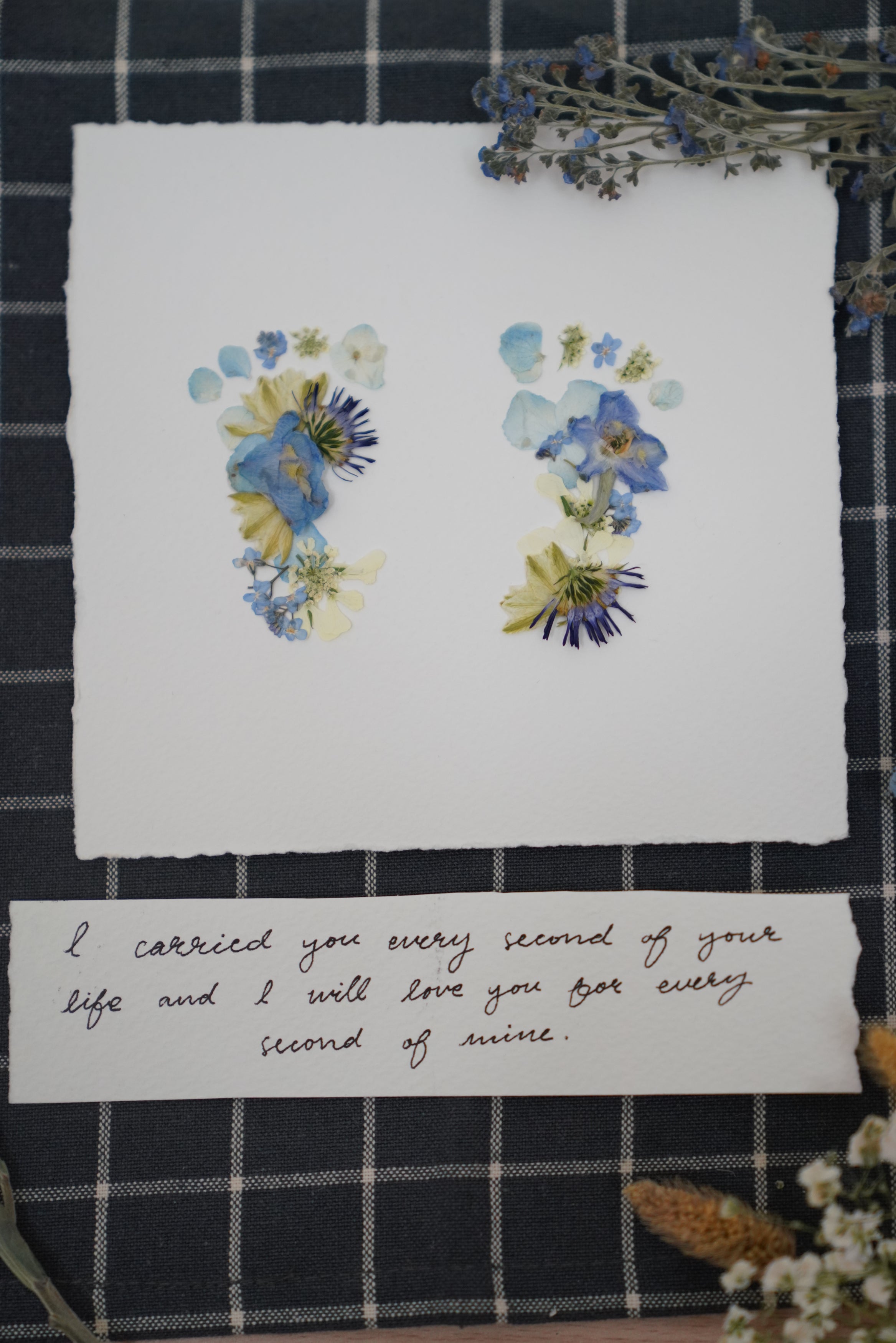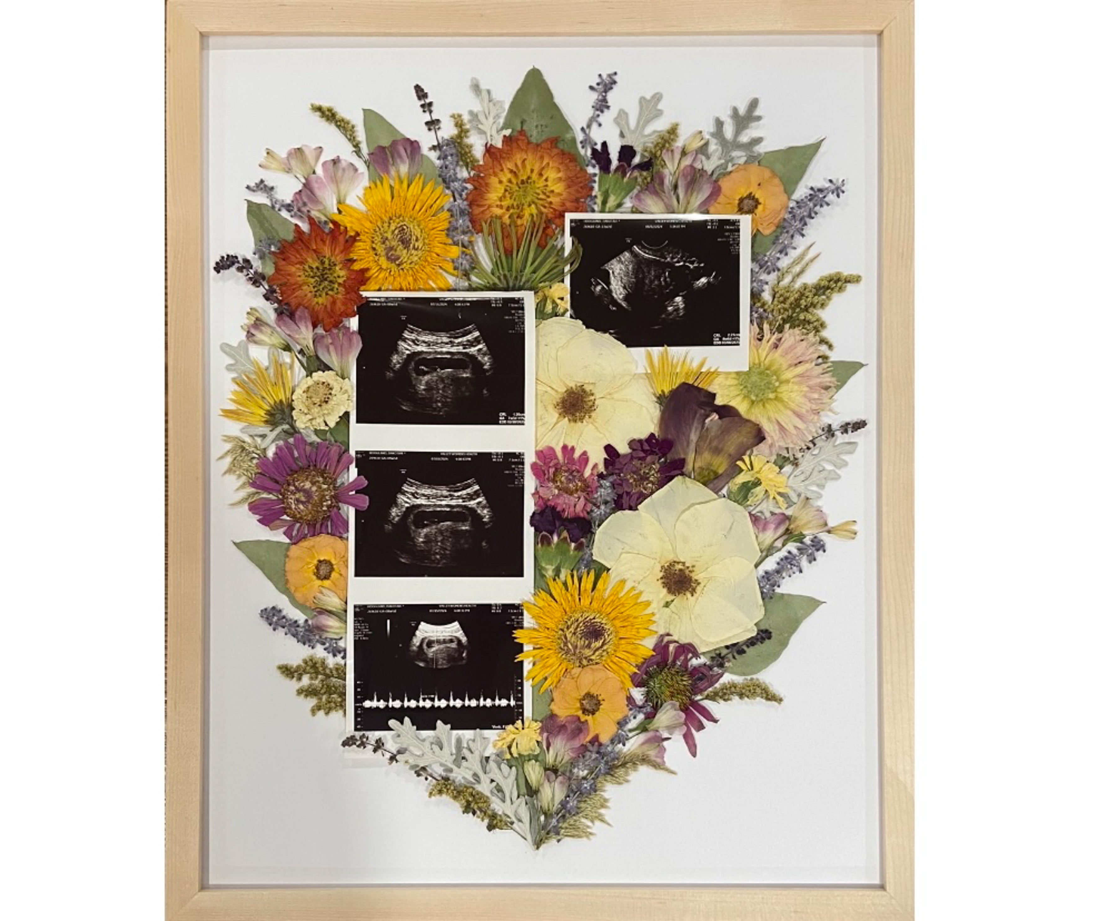 At Pressed Floral, we are often entrusted with flowers from families walking this path of grief. The blooms arrive with weight, carrying stories of love, loss, and remembrance. Each preservation piece we create becomes more than art — it becomes a way to hold onto a memory, a name, a heartbeat, and a hope.