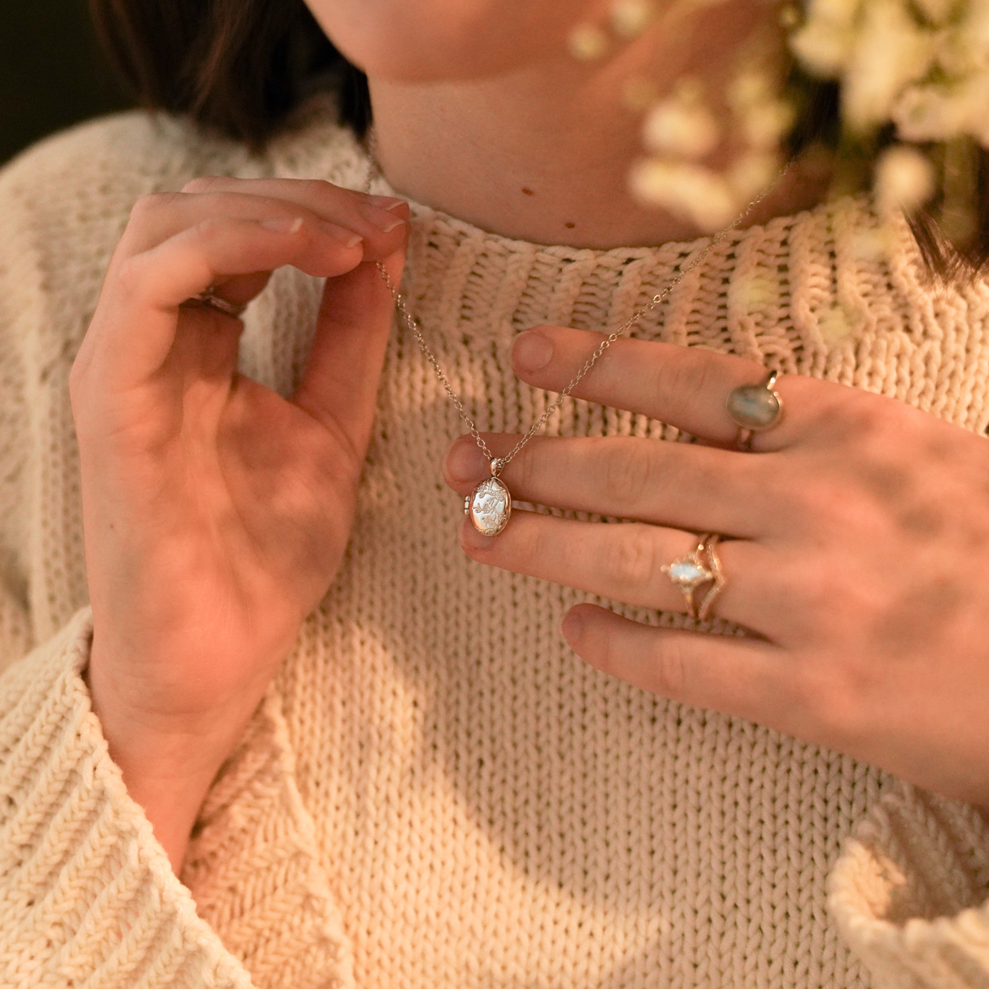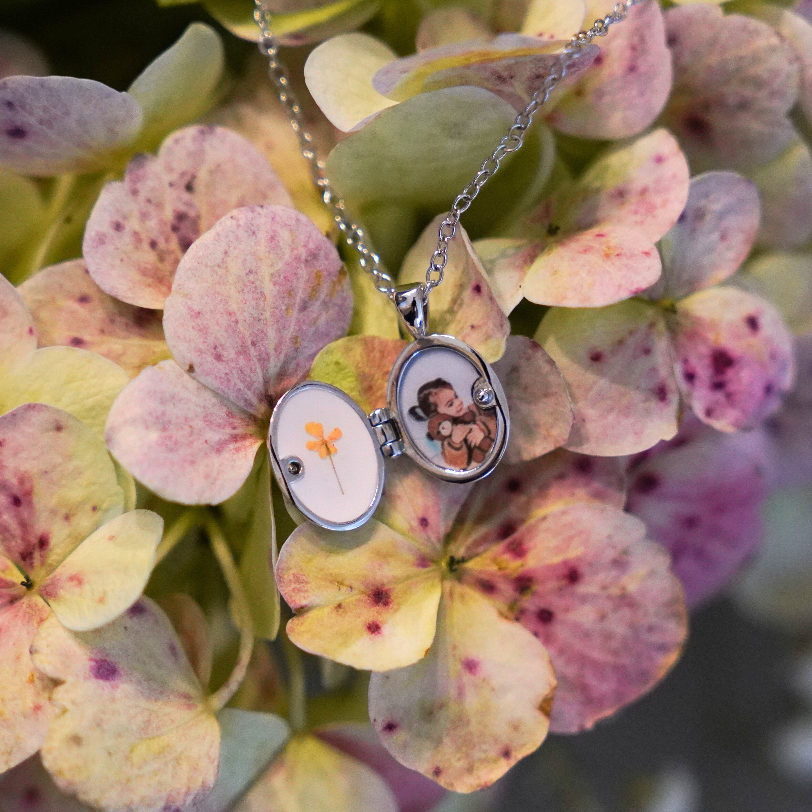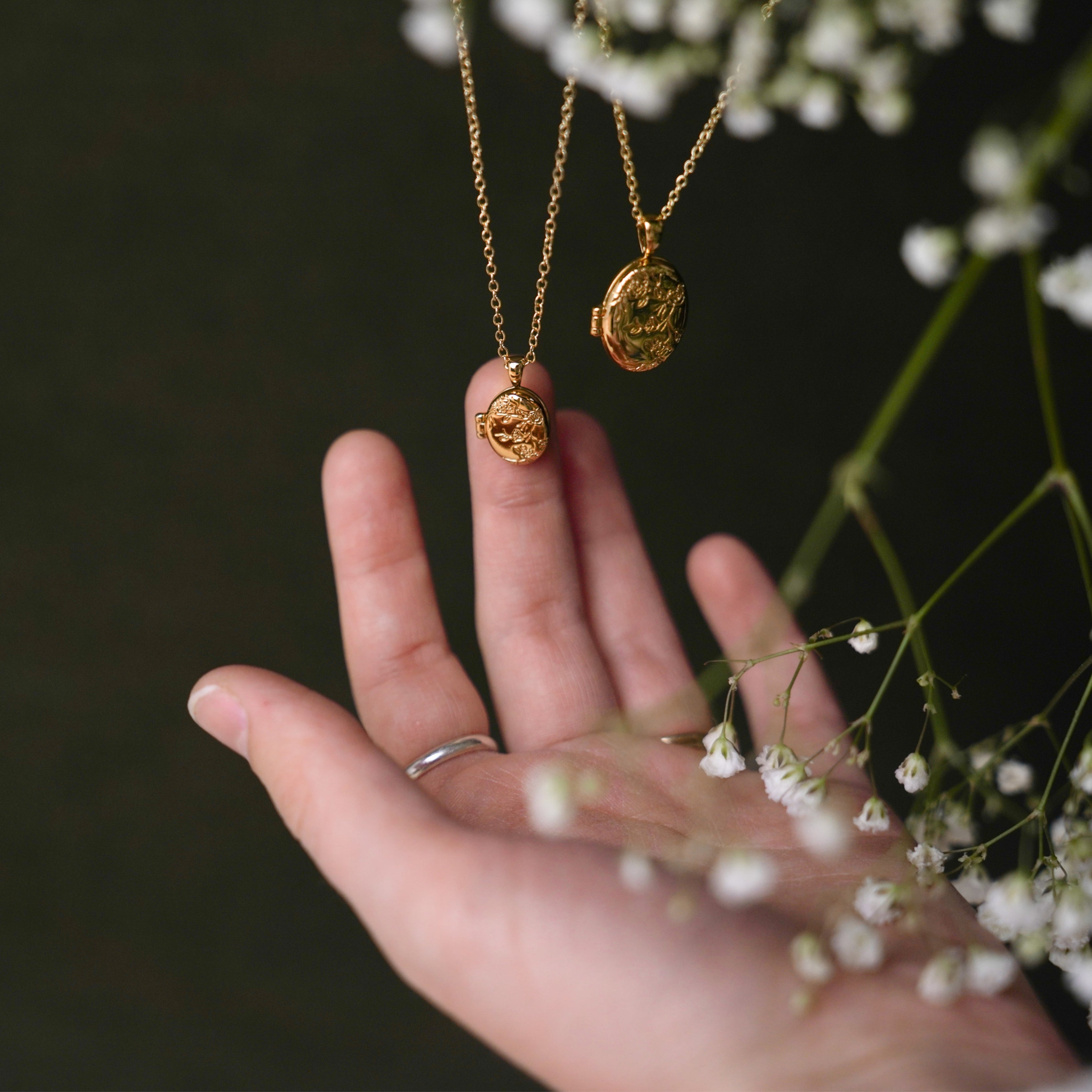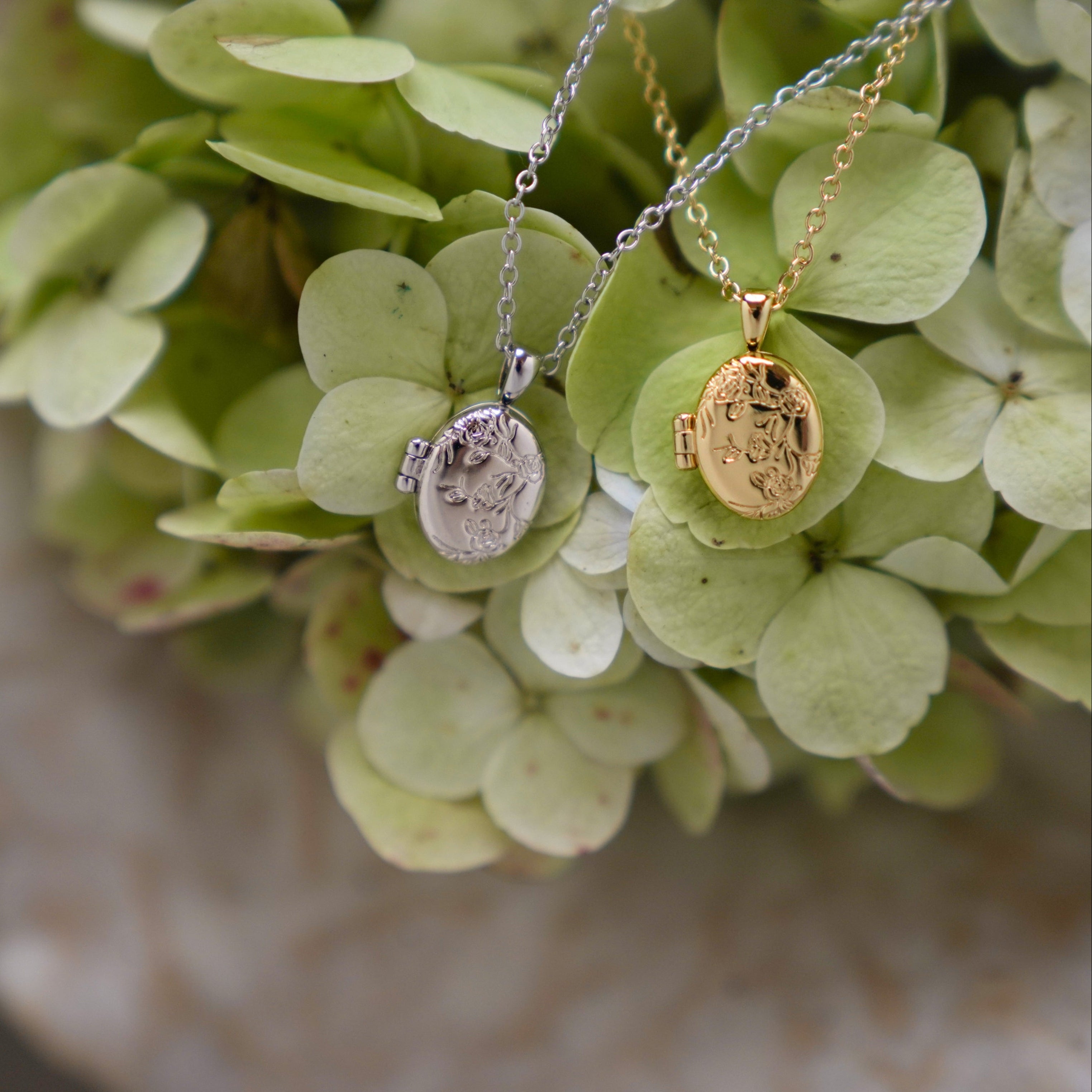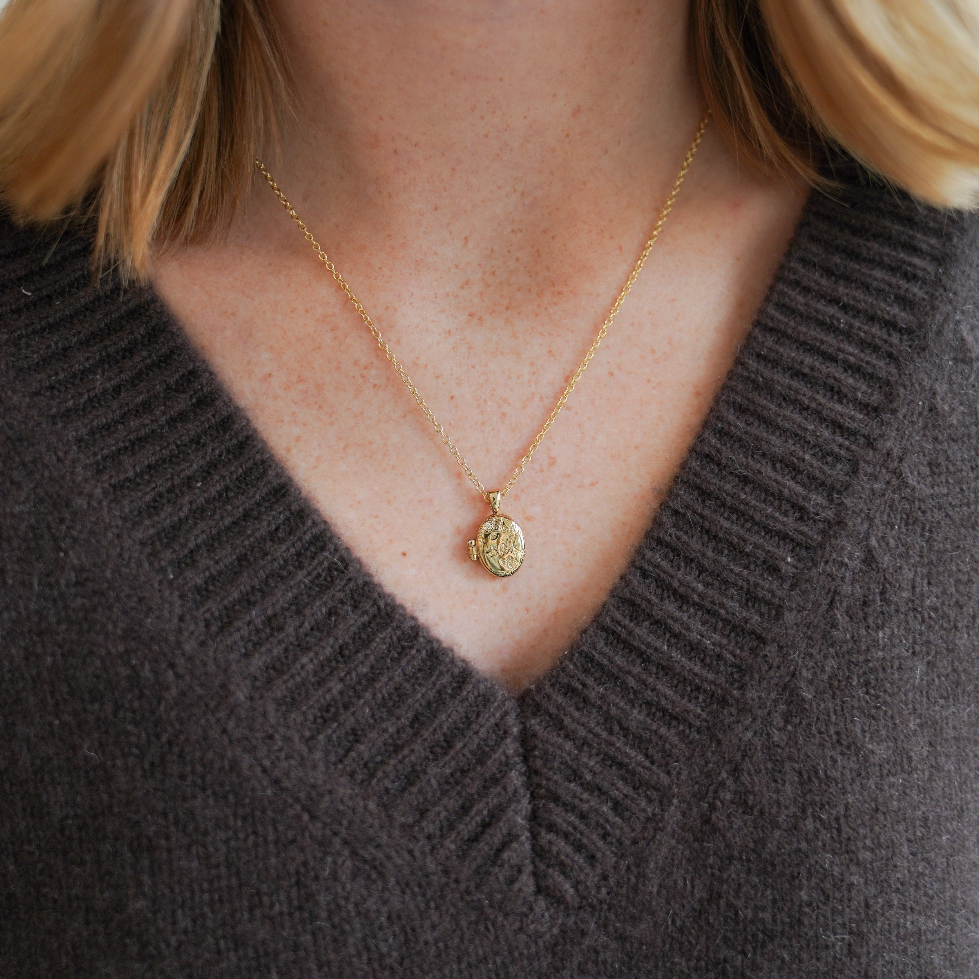 This 14k yellow or white gold-filled locket is designed for long-lasting durability. It features a 16" chain with a 2" extender (chain is 1.5mm thick) and a 8mm x 11mm locket.