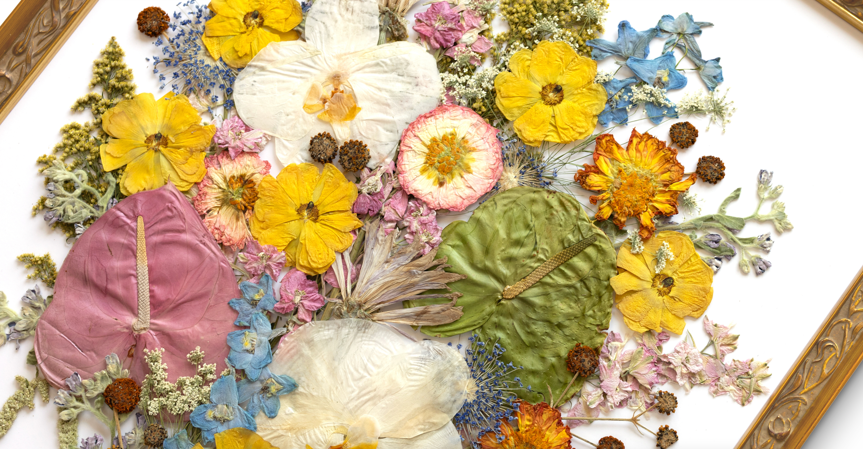 Our team of skilled designers have an eye for form, shape, color, harmony and balance. But there are some choices you can make for your bouquet that will make your pressed frame stand out.