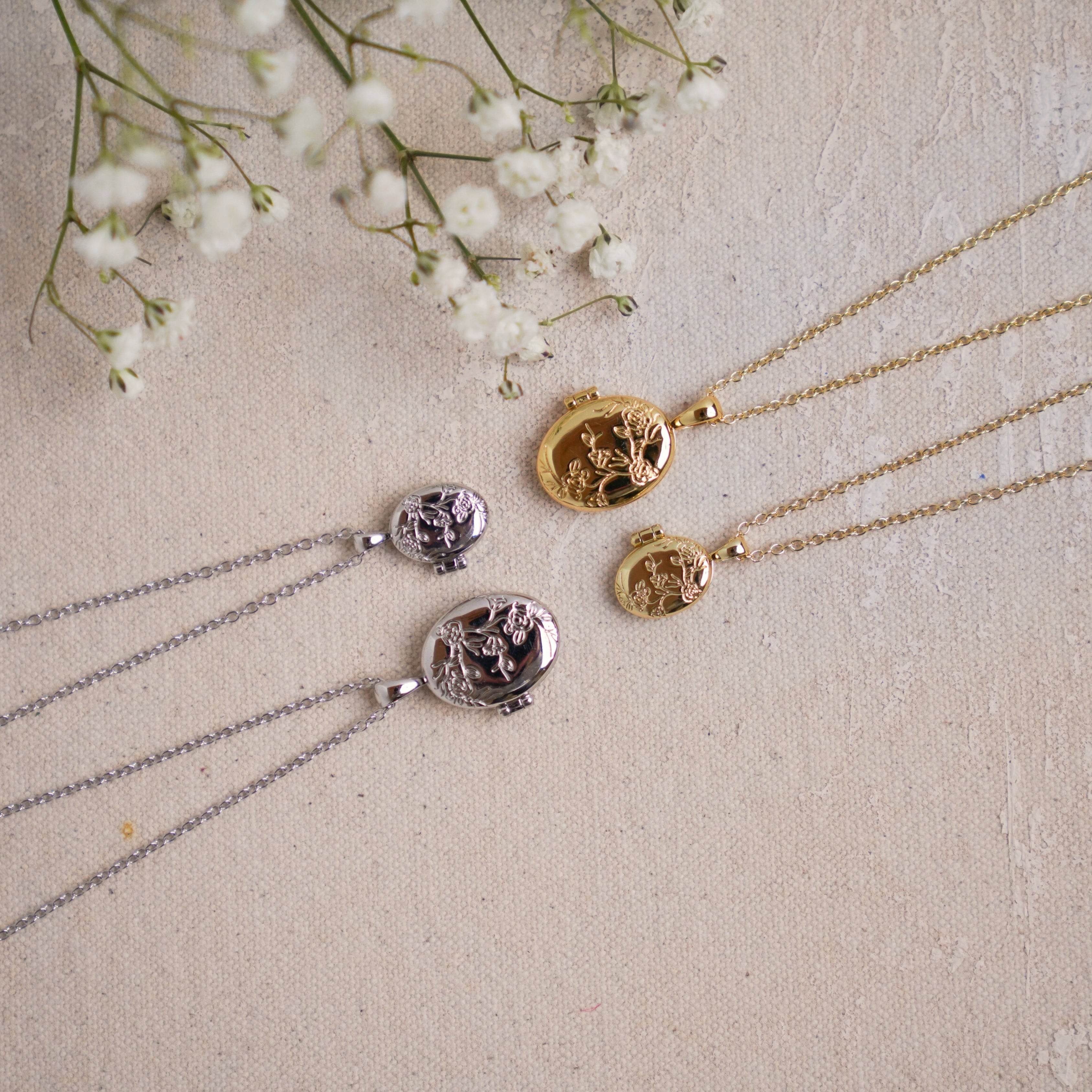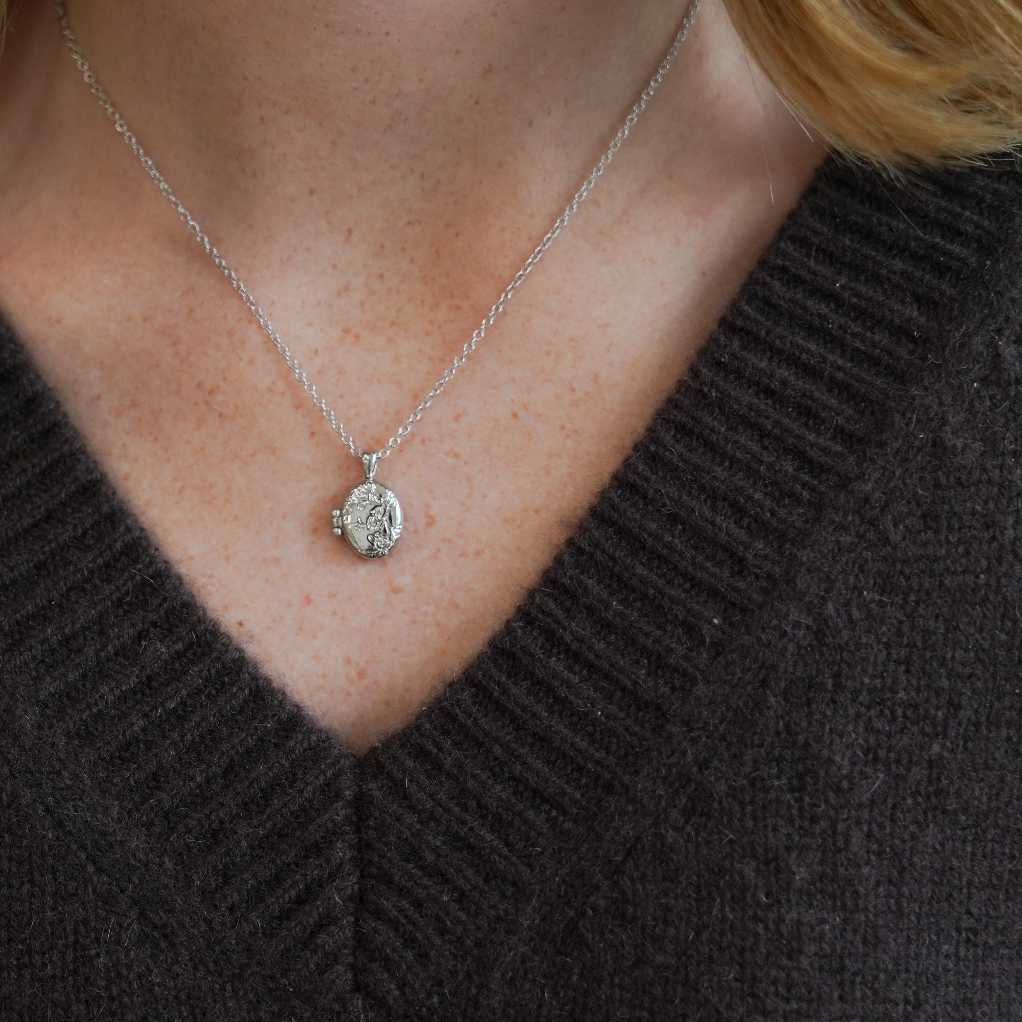 This 14k yellow or white gold-filled locket is designed for long-lasting durability. It features a 16" chain with a 2" extender (chain is 1.5mm thick) and a 8mm x 11mm locket.